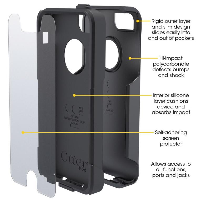 Η θήκη Commuter της OtterBox είναι κατασκευασμένη για να εφαρμόζει τέλεια στα iPhone 5 & 5s και να το προστατεύει από την καθημερινή χρήση σε όλες τις συνθήκες! Το σετ περιλαμβάνει μία εξωτερική θήκη από λείο και κομψό πολυανθρακικό πλαστικό για να προστατεύει τα iPhone 5 ή 5s από γρατζουνιές & φθορές, μιά εσωτερική θήκη από σιλικόνη για να απορροφά τους κραδασμούς από πτώσεις ή χτυπήματα και μία προστατευτική μεμβράνη για την οθόνη. Παρέχει πλήρη προστασία για τη συσκευή σου εξασφαλίζοντας ελεύθερη πρόσβαση στα βασικά πλήκτρα, τις θύρες διασύνδεσης, την οθόνη και την πίσω κάμερα.